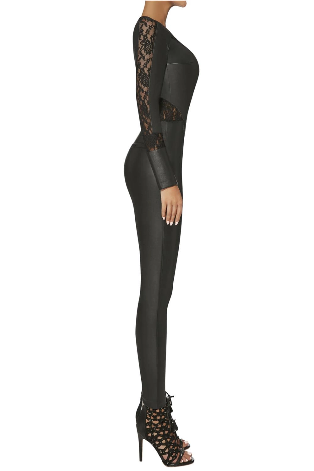 Sexy Jumpsuit aus Eco-Leder und Spitze für selbstbewusste Frauen!Imitiert Leder und passt sich ideal an Ihren Körper an und betont hervorragend jene Vorzüge. Feine Spitzenelemnte verleihen dem Overall noch mehr Charme und Eleganz. Besitzt lange Ärmel und einen Reißverschluss. Die Nähte lassen Ihre Figur optisch schlanker wirken.Dicke: 200 DEN.