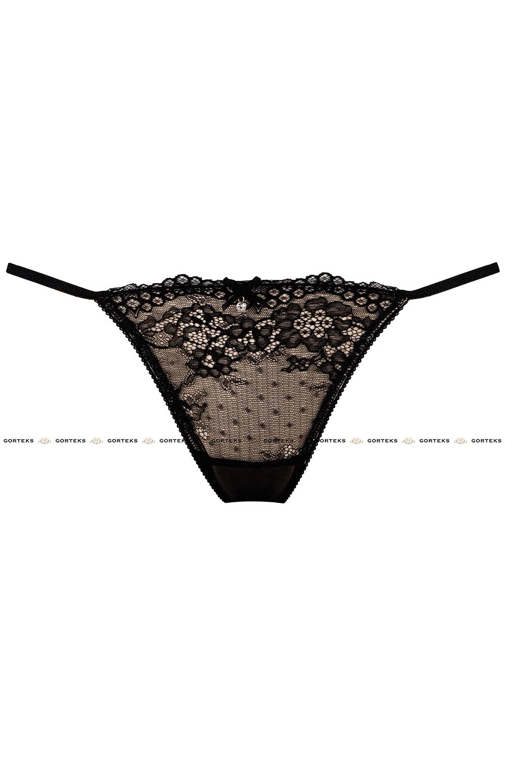 Gorteks Scarlet/MS Strings Dame Tangas Unterhosen Unterwäsche Spitze Setteil EU, Schwarz-Beige