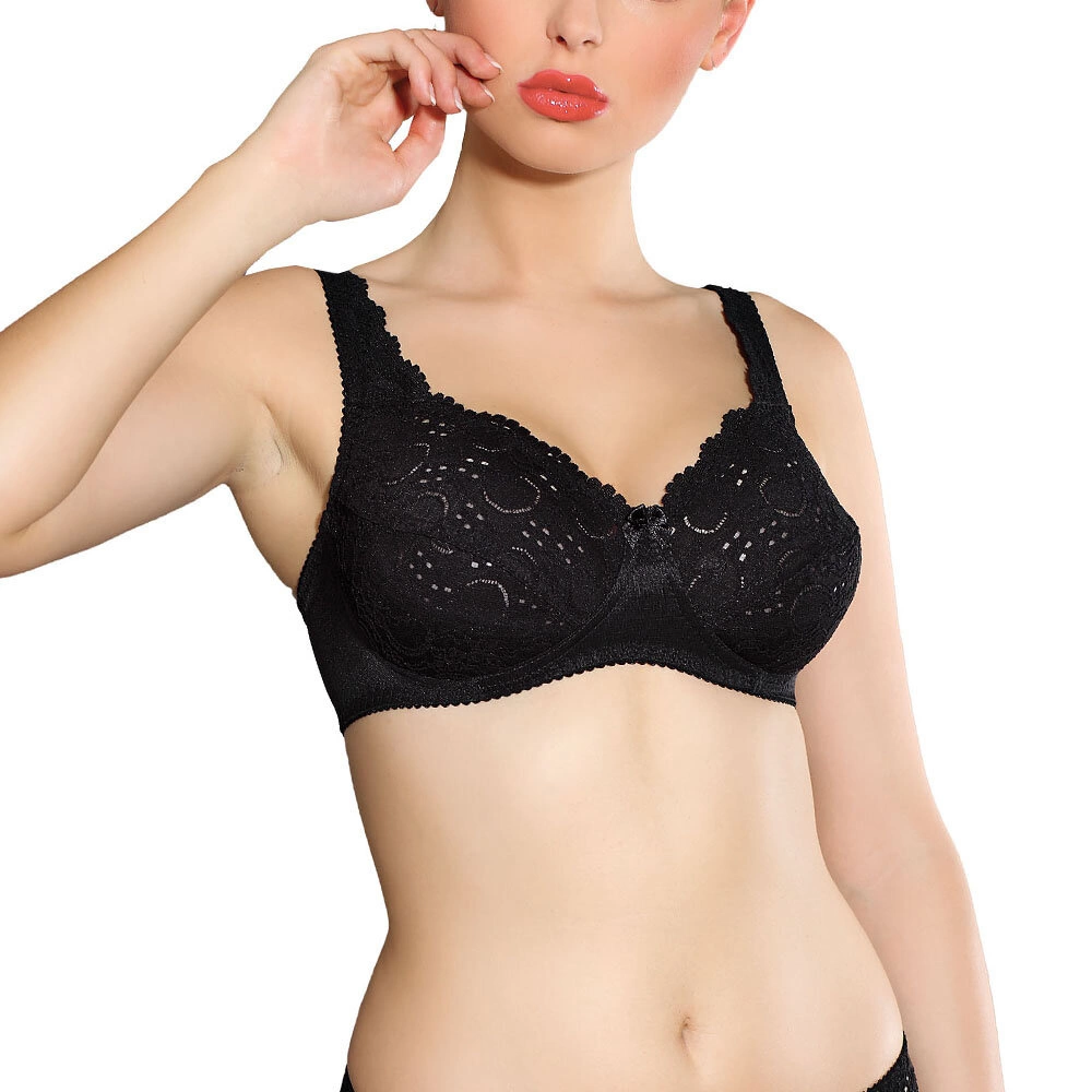 Jarpol 022 Soft BH Dame Unterwäsche Spitze bügellos regulierbar EU, schwarz