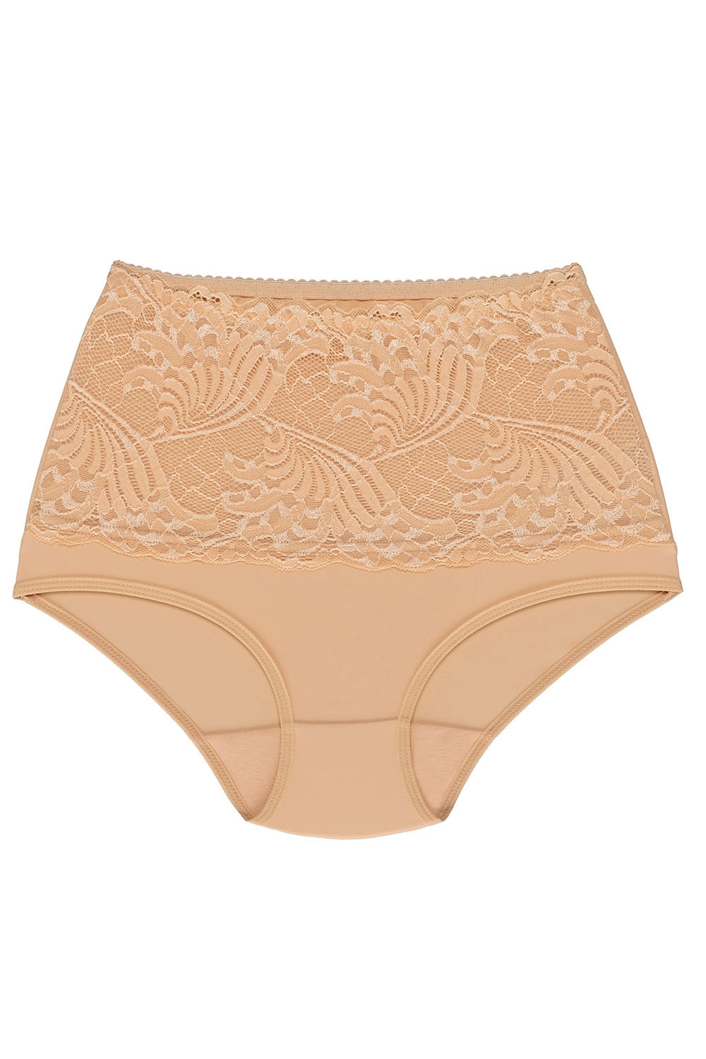 Wolbar Damen Sexy Shapewear-Slips Spitze Miederslip Hohe Taille Figurformende WB207, beige