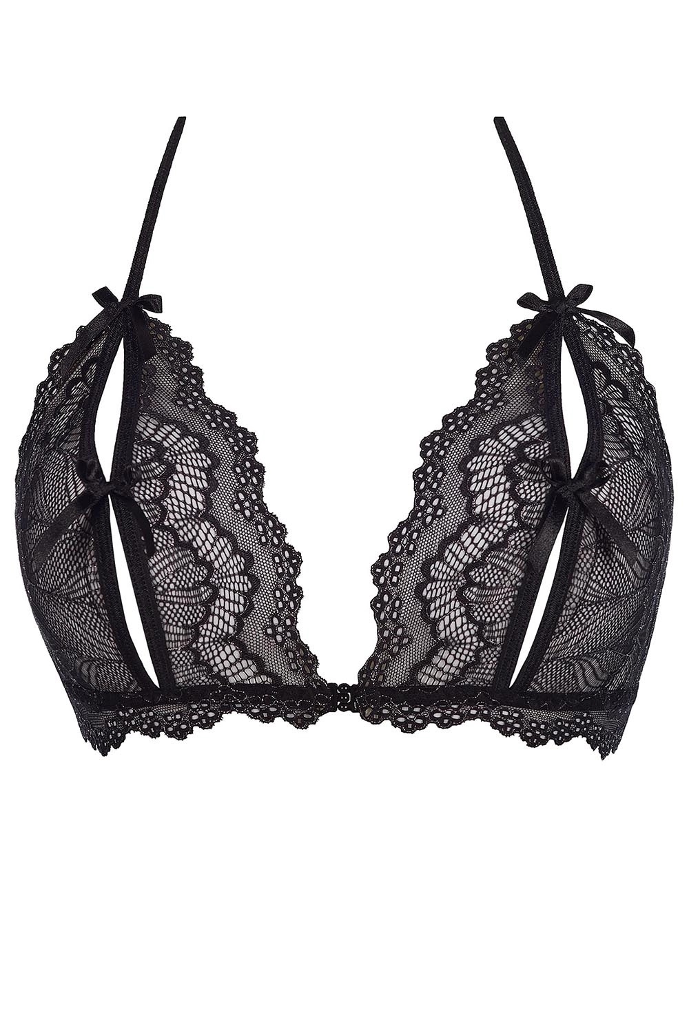 Axami V-7751 Bonbon Soft BH Dame Bralette Dessous Spitze Neckholder Vornverschluss Setteil EU, Schwarz