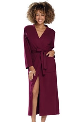 Dkaren Dame Morgenmantel Langarm Musterlos Kurz Locker Nachtwäsche Melissa, Weinrot