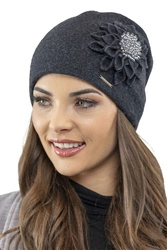 Vivisence Damen Mütze Wolle Blumenapplikation Falten Antistatisch Elegant 7052, dunkelgrau