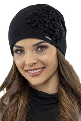 Vivisence Damen Wintermütze Wolle Blumenapplikation Warm Antistatisch 7053, schwarz