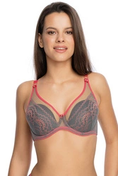 Gaia Dame Halbversteifter BH Push-Up Schalen Zweifarbig Stickerei Netz Träger 1133 Reja, Grau