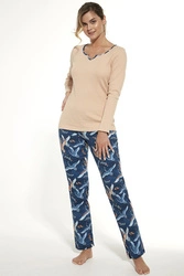 Cornette Dame Schlafanzug Nachtwäsche Langarm Nachtwäsche Gemustert 2-teilig 739/318 Veronica, Beige