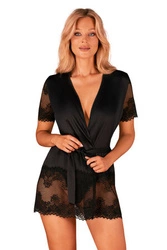 Obsessive Dame Morgenmantel Satin Spitze Sexy Durchsichtig Sinnlich Gemustert Dessous Maderris, Schwarz