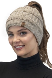Vivisence Damen Mütze Zopfschlaufe Gefüttert Flauschig Gummibund Winter 7075, beige