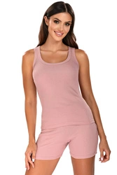 Vivisence Dame Schlafanzug 2-teiliges Set Pyjama Top Shorts Glatt Einfarbig Musterlos Baumwolle 2027,
