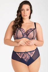 Gorsenia Dame Soft BH Große Brüste Bügel Geblümt Tüll Netz Dessous K820 Edna, Dunkelblau