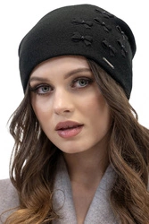 Vivisence Damen Mütze Winter Perlen Perfekter Passform Durch Falten 7089, schwarzgrau