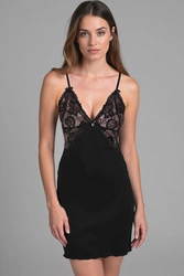 Vivisence Damen Nachthemd Viskose Spitze Schleife Zierträger Figurbetont 2040, schwarz