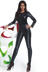 Bas Bleu Rosie Jumpsuit Damen Overall langarm Spitze Rundhals Reißverschluss musterlos EU,
