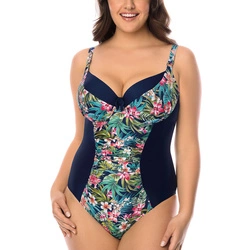 Vivisence Damen Badeanzug Gepolstert Mit Bügel Für Formendes Dekolleté 3108, dunkelblaue Blumen