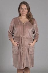 Vivisence Morgenmantel Baumwoll Reißverschluss Gürtel Taschen Für Zuhause Komfort 5018, beige