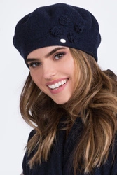 Kamea Dame Baskenmütze Winter Kopfbedeckung gemustert warm Ariel, Dunkelblau