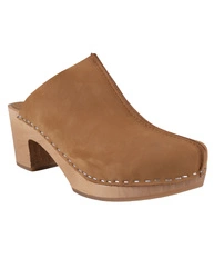 Vollsjö Damen Clogs aus Holz und Leder Hausschuhe Schwarz Holzschuhe Clogs für Frauen, Modisch und Gemütlich Freizeitschuhe, Heimschuhe, Hergestellt in der EU, hellbraun