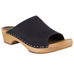 Vollsjö Damen Clogs aus Holz und Wildleder Hausschuhe Holzschuhe Clogs für Frauen, Modisch und Gemütlich Freizeitschuhe, Heimschuhe, Hergestellt in der EU, Dunkelblau