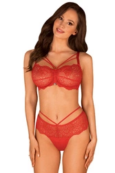 Obsessive Dame Reizwäsche Set 2-teilig Sexy String Träger Spitze Loventy, Rot