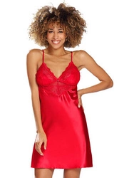 Dkaren Dame Nachthemd Satin Spitze Klassisch Ausschnitt Sinnlich Glatt Frances , Rot
